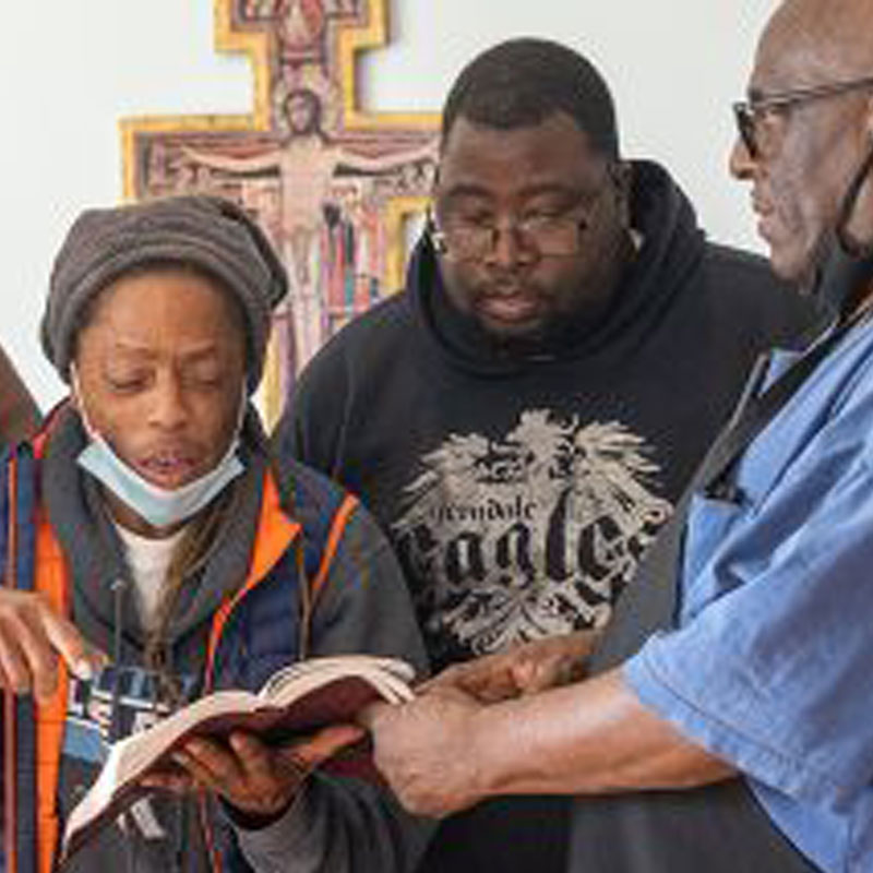 AA/NA groups meet at our Soup Kitchen locations, and we operate two residential programs to help men overcome addiction and re-enter society.
